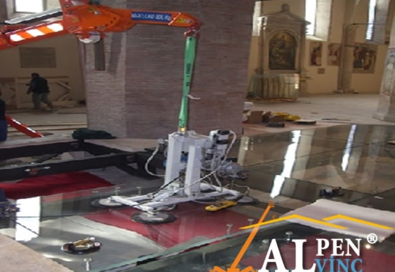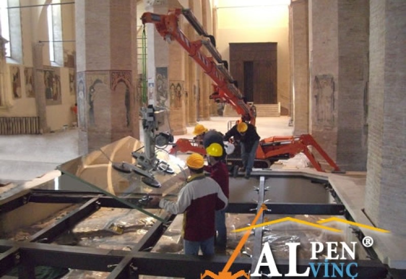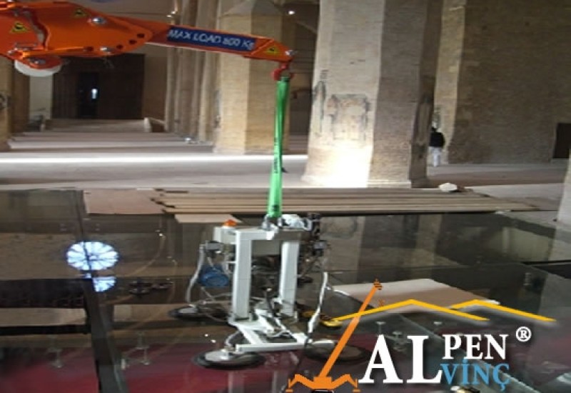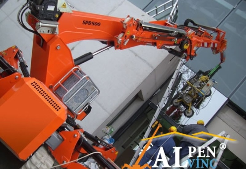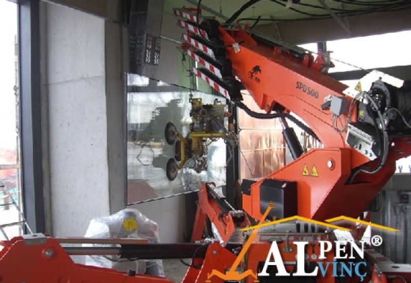 Bu makinenin başlığına takılan çok fonksiyonlu özel vakum sistemi ile yüksek yapılı inşaatların dış cephe giydirmelerinde camların yüksek noktalara kadar taşınmasını ve montajlanlamasını sağlamaktadır.
